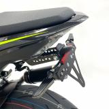 Kennzeichenhalter für Kawasaki Z900 ab Modelljahr 2017. Zur Verwendung mit Zubehör-Blinker (Adapter für Gewinde M8 enthalten), Rückstrahler und Kennzeichenbeleuchtung inklusive. Für Typ ZR900B, ZR900D, ZR900DA2, ZR900F, ZR900H und ZR900HA2.