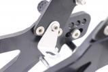 Rennsport erprobte Fussrastenanlage, voll ergonomisch verstellbar in 9 Positionen und bis zu 20 mm